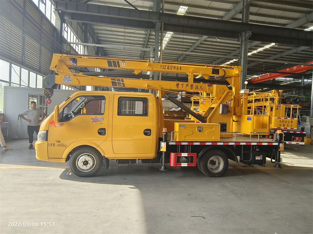 專用性能液壓 360 度全回轉,三節折疊臂,單液壓舉升缸,帶雙向平衡閥,帶電控 操作舉升臂, 四支液壓油缸可調式支腿帶雙向液壓鎖(支腿操作為手動操作, 可單獨控制),上下二套操作臺,帶 1 噸吊鉤,最大作業高度 13 米,最大作業 半徑 5.6 米,最大起吊重量 1 噸。 設備結構緊湊,堅固耐用,操作方便可靠。獨特的全回轉三節臂液壓 操控系統設計使工作人員操作更平穩,能更安全的將工作人員送到作業位 置,進行維修,安裝,清洗,攝影,造船, 化工,電力搶修,剪枝,更換路燈及其 他工程高空作業搶修!