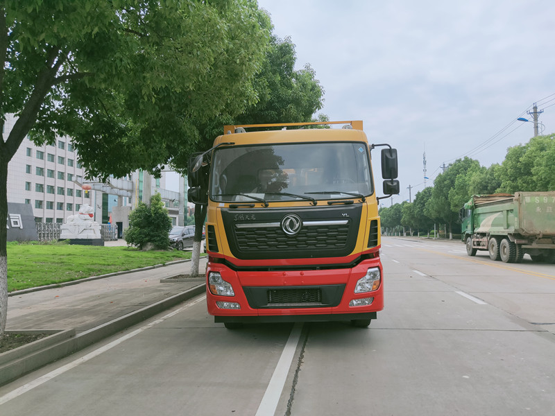 底盤配置: 采用東風(fēng)天龍底盤,工程黃駕駛室(顏色可選),原廠雙層大梁,法士特9檔變速箱,軸距4350+1350,1100鋼絲胎,原廠abs,帶方向助力,離合助力器,氣剎制動,帶冷暖空調(diào)。