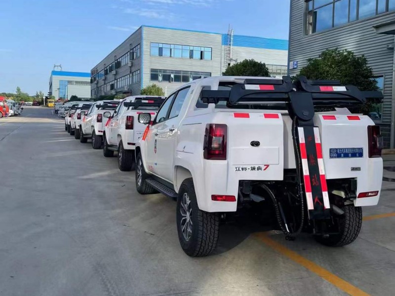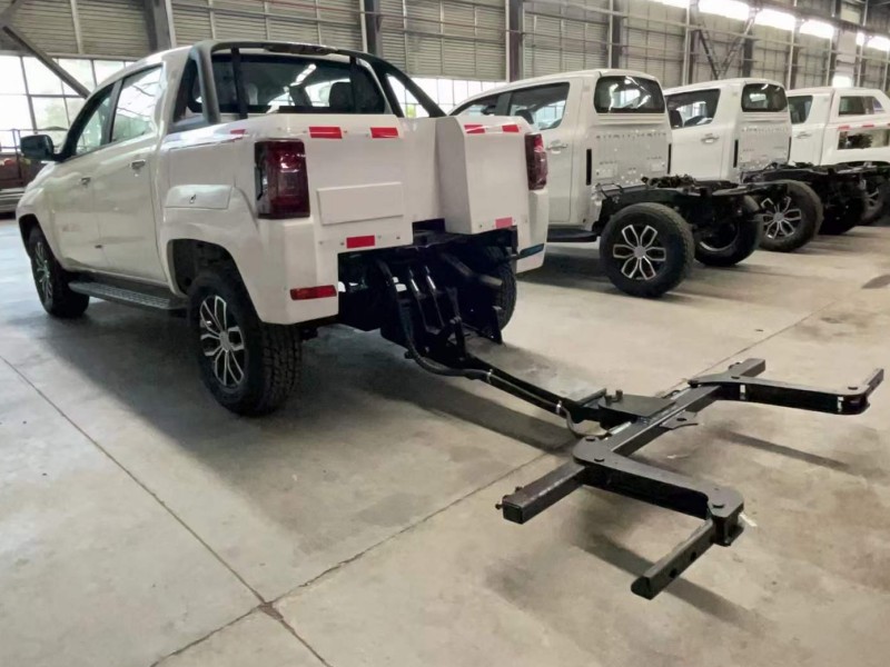 該車法定托舉質量為1T,最大拖牽質量為1.8T,該車使用新款專利產品輔助輪,使該車由托舉升級為拖牽,大大提高清障車作業效率,電動液壓單元的極限承壓3噸,請謹慎使用。