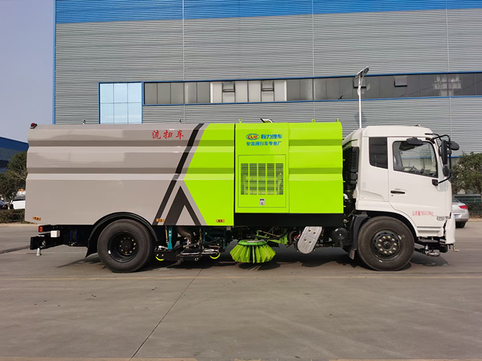 該車是采用東風天錦底盤改裝而成,集掃路車、灑水車和高壓清洗車功能于一體,具備路面清掃、路面洗刷、高壓清洗、低壓沖洗、路緣石洗刷、垃圾收集、污水回收、噴霧降塵和道路隔離墻清洗、小廣告清洗等多種作業(yè)功能。具有先進的智能化一鍵控制技術(shù),全部作業(yè)均在駕駛室內(nèi)完成,作業(yè)時,只需選定作業(yè)模式后,各作業(yè)機構(gòu)的啟動與關(guān)停由程序自動控制。有“全洗掃”、“左洗掃”、“右洗掃”、“全掃”、“左掃”和“右掃”、“全洗”、“左洗”和“右洗”9種作業(yè)模式可供選擇。