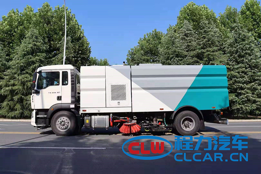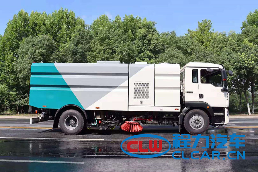該車是采用重汽豪沃底盤改裝而成,集掃路車、灑水車和高壓清洗車功能于一體,具備路面清掃、路面洗刷、高壓清洗、低壓沖洗、路緣石洗刷、垃圾收集、污水回收、噴霧降塵和道路隔離墻清洗、小廣告清洗等多種作業(yè)功能。具有先進的智能化一鍵控制技術(shù),全部作業(yè)均在駕駛室內(nèi)完成,作業(yè)時,只需選定作業(yè)模式后,各作業(yè)機構(gòu)的啟動與關(guān)停由程序自動控制。有“全洗掃”、“左洗掃”、“右洗掃”、“全掃”、“左掃”和“右掃”、“全洗”、“左洗”和“右洗”9種作業(yè)模式可供選擇。